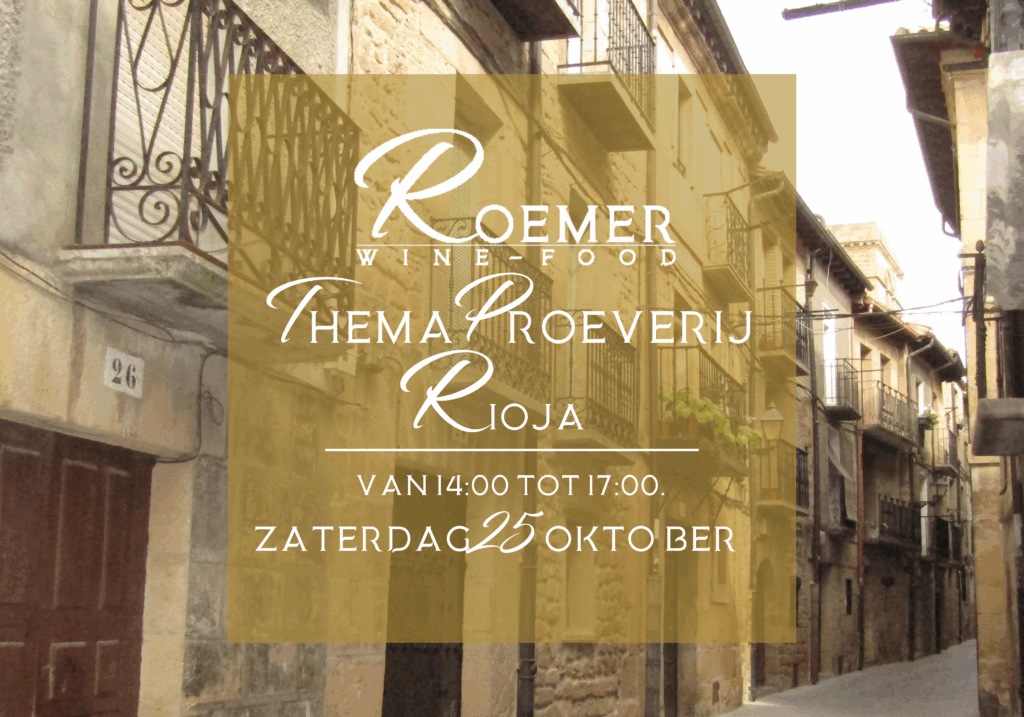 Dit keer is het thema van onze maandelijkse themaproeverij Rioja! Kom de verschillende stijlen ontdekken onder het genot van verschillende hapjes uit de keuken. Mis deze gezellige en educatieve middag niet!